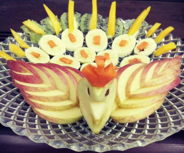 制作水果拼盘的目的是使简单的个体水果通过形状、色彩等几方面艺术性地结合为一个整体,以色彩和美观取胜,从而刺激客人的感官,增进其食欲。水果拼盘的特点:造型生动、形态各异,诱人食欲。