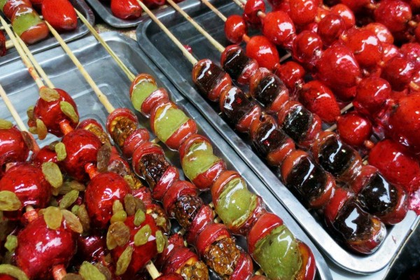 新乡美食中心冰糖葫芦生产工艺经过几年的大胆创新,从配方、配料、熬糖等关键环节上进行研究创新,研制出不化糖葫芦,夏天可比传统时间多6-8倍时间不化糖,冬天比传统多10-15倍的时间不化糖,并且完全保留了山楂原有的香甜自然,酥脆可口。在技术含量上打破了传统的粘牙、化糖、糖衣不脆的难题。特点是:是入口酥脆、有一种浓浓的蜂蜜味和天然的薄合糖,果香味,把冰糖葫芦中蜂蜜的营养与口味完完全全的保留下来。