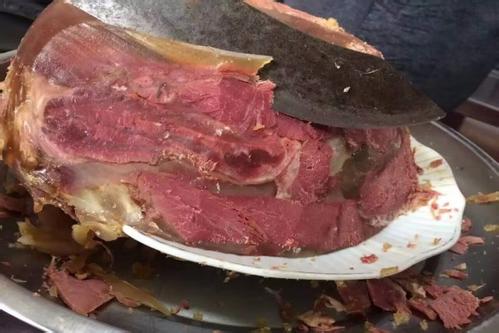 小车牛肉要选用上等的黄牛肉,将牛肉切成小块后在锅内煮烂,另一锅同时煮上牛蹄筋,一直把筋煮成浓汤,然后在容器内舀一勺汤,摆一层牛肉,撒上磨成粉的花椒大料,容器装满后,盖上盖子,十多分钟后,凝固的小车牛肉就算成功了。吃时用刀削成薄薄的片,还可以夹在烧饼里,吃到嘴里香而不腻,而且气形两补,这种牛肉就叫垛子牛肉。